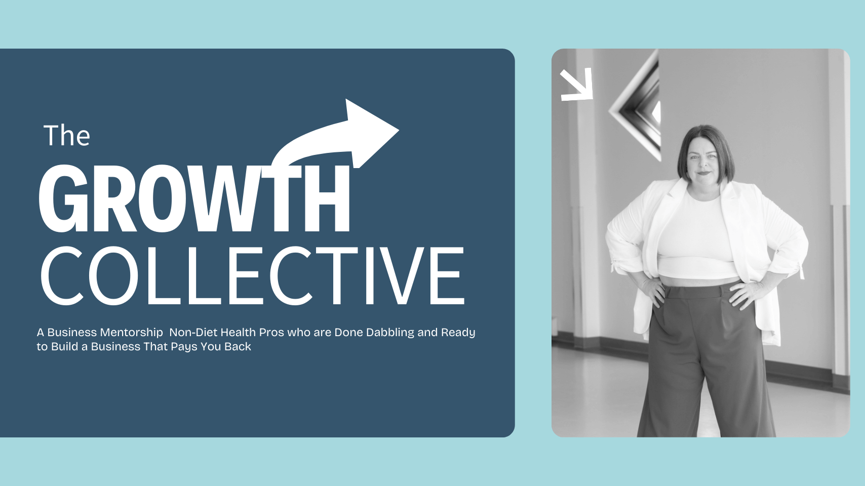 The Growth Collective is a 6-month business mentorship for non-diet professionals who are ready to get strategic, take focused action, and build a full-time business with support that actually gets inside your business.